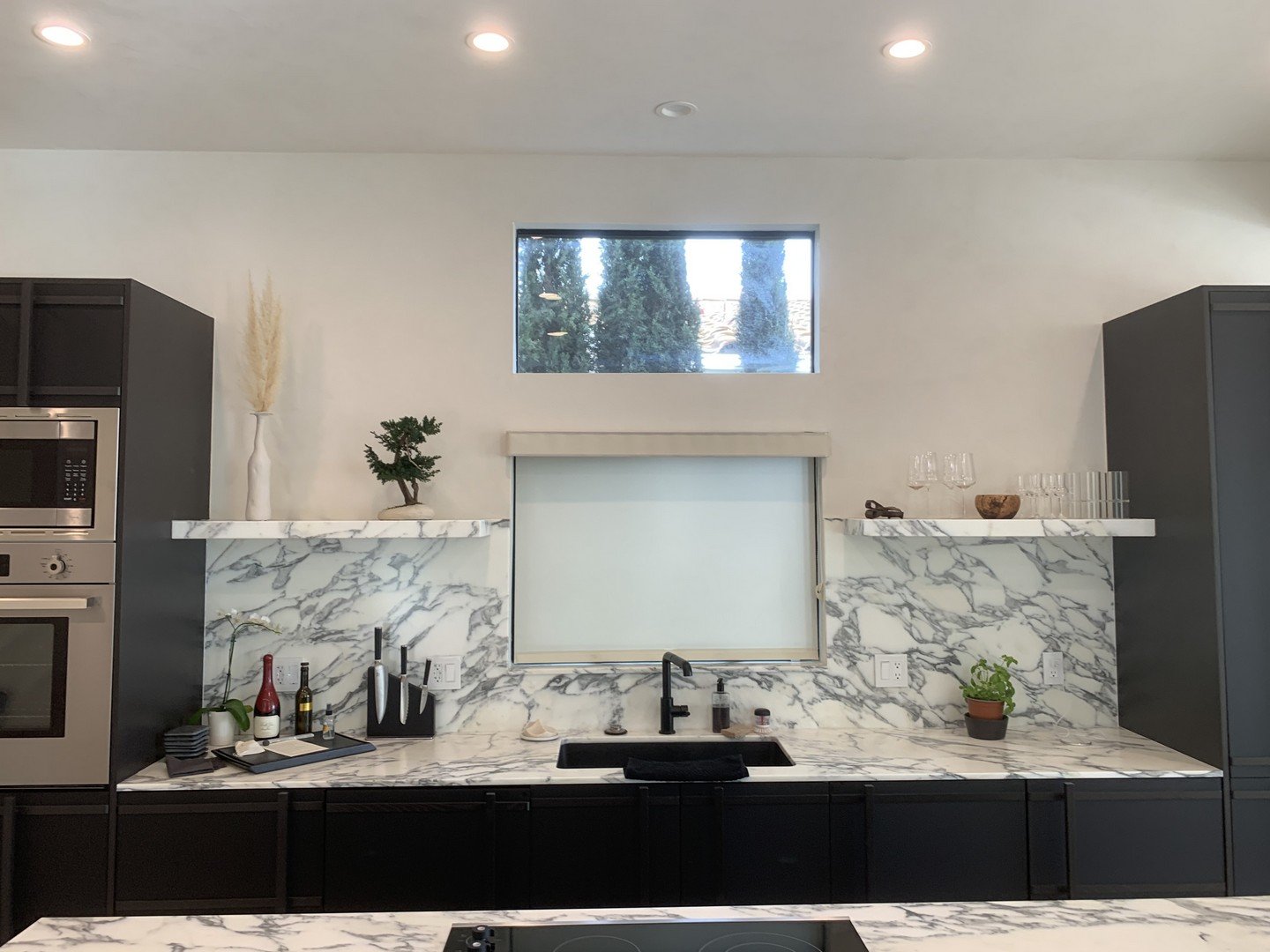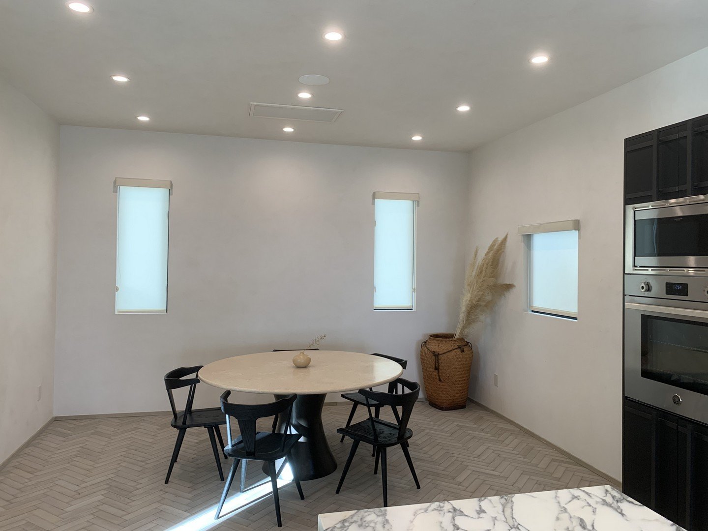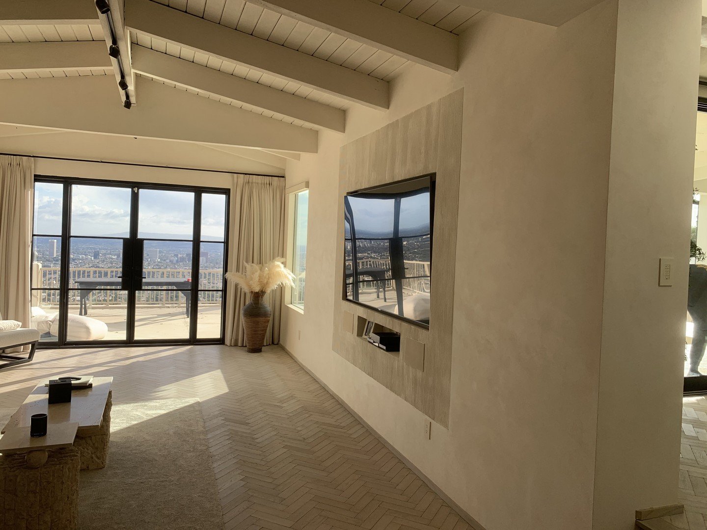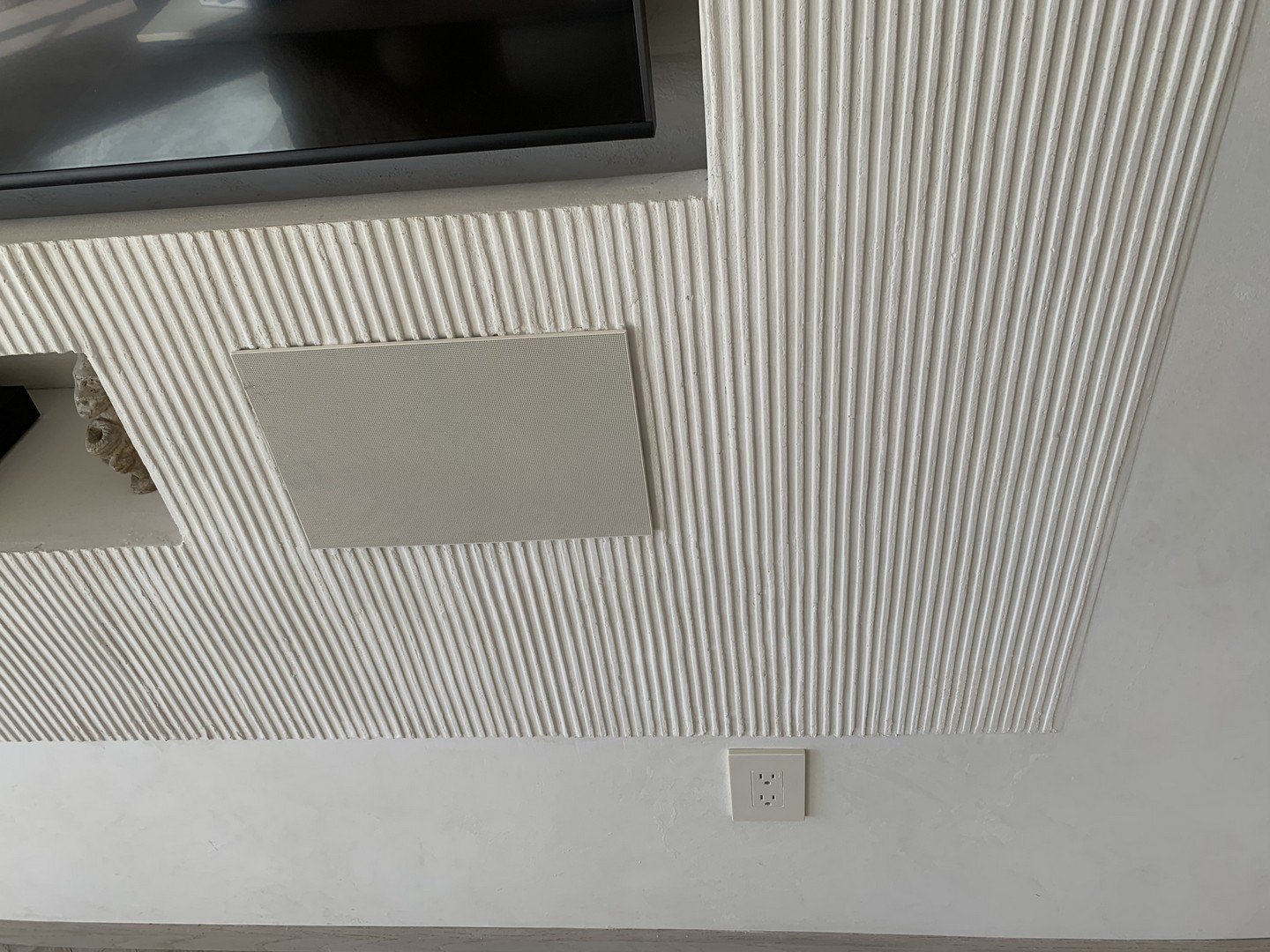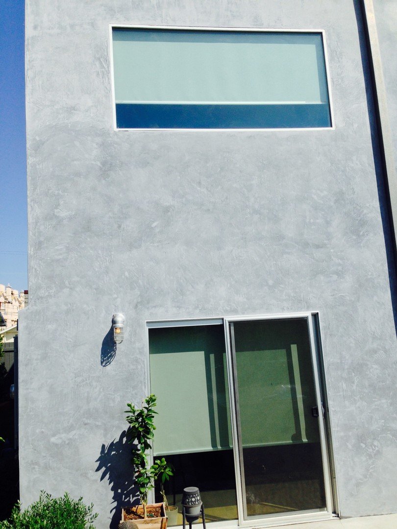 from Meoded plaster in Los Angeles is very versatile, works great for both interior and exterior applications, is smooth and it has less movement than the other marmorios for a cleaner look or more modern appearance.