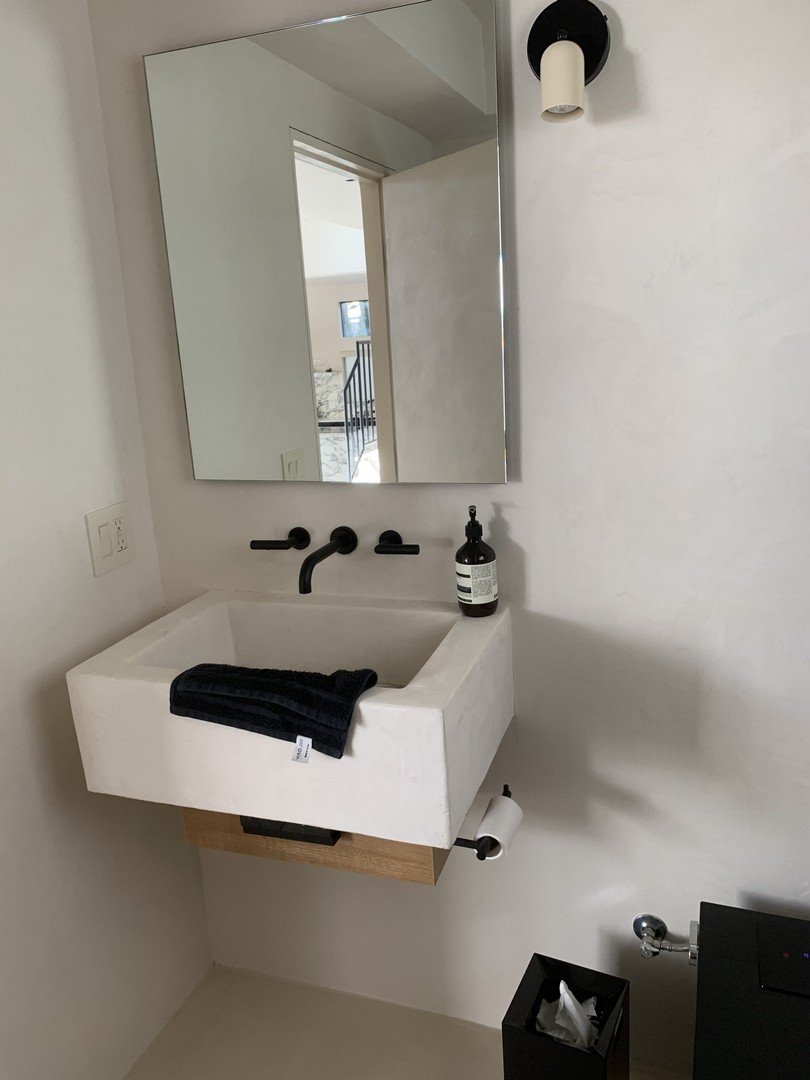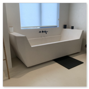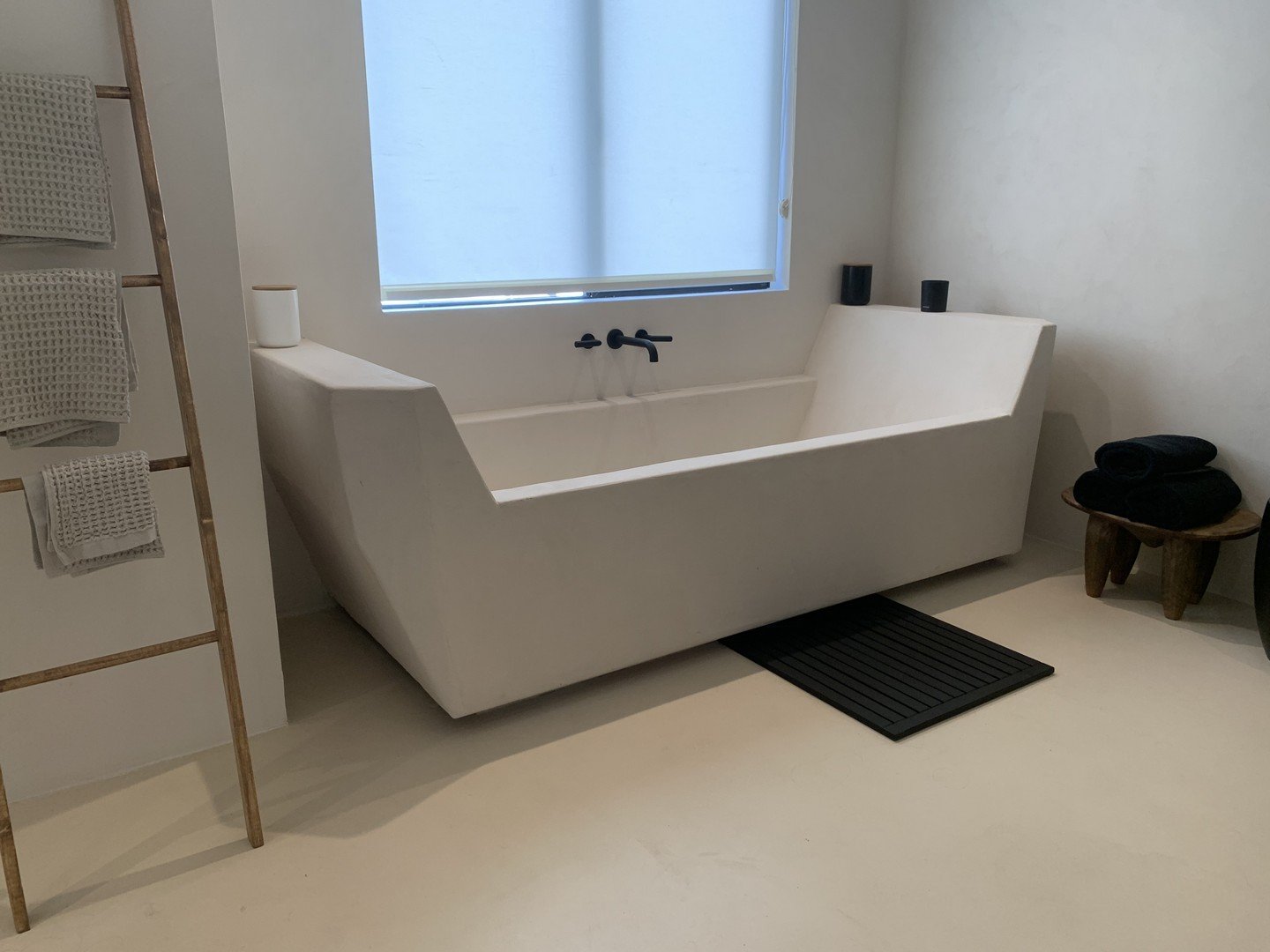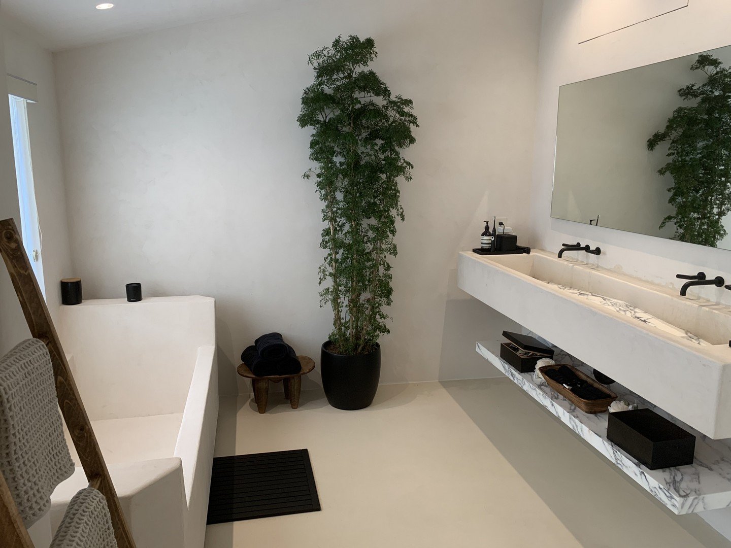 this is a similar plaster to the marmorino matte but it is stronger and more durable, in some areas of the world like Morroco is called tadelakt, and the strength of the plaster allows us to use it in showers and wet areas.