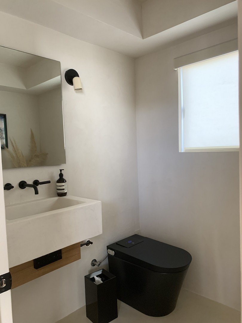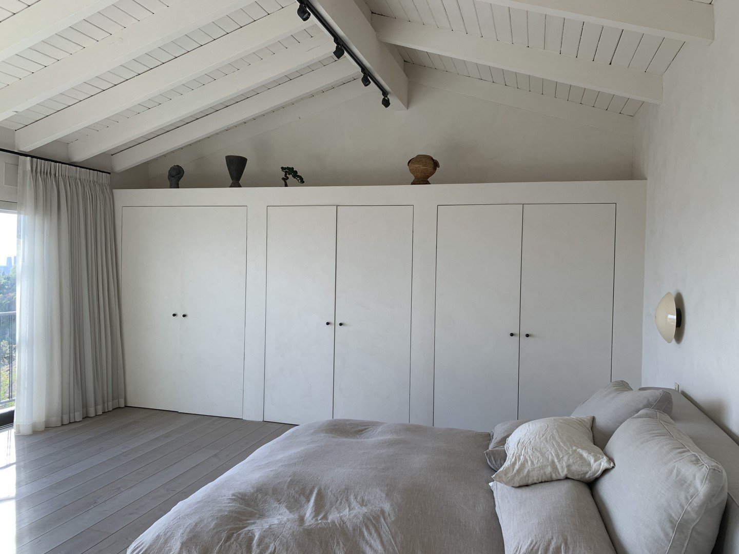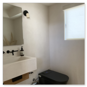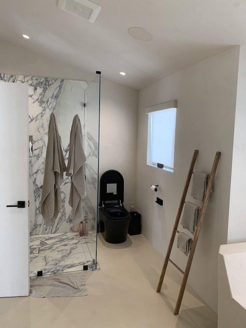 this is a similar plaster to the marmorino matte but it is stronger and more durable, in some areas of the world like Morroco is called tadelakt, and the strength of the plaster allows us to use it in showers and wet areas.